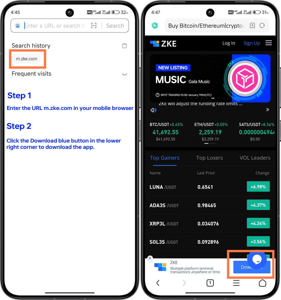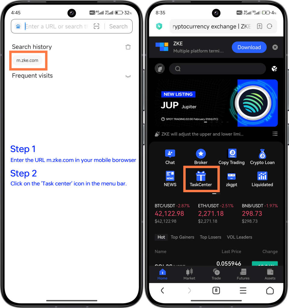 Step 1: You need to open our website by typing m.zke.com into your mobile browser.