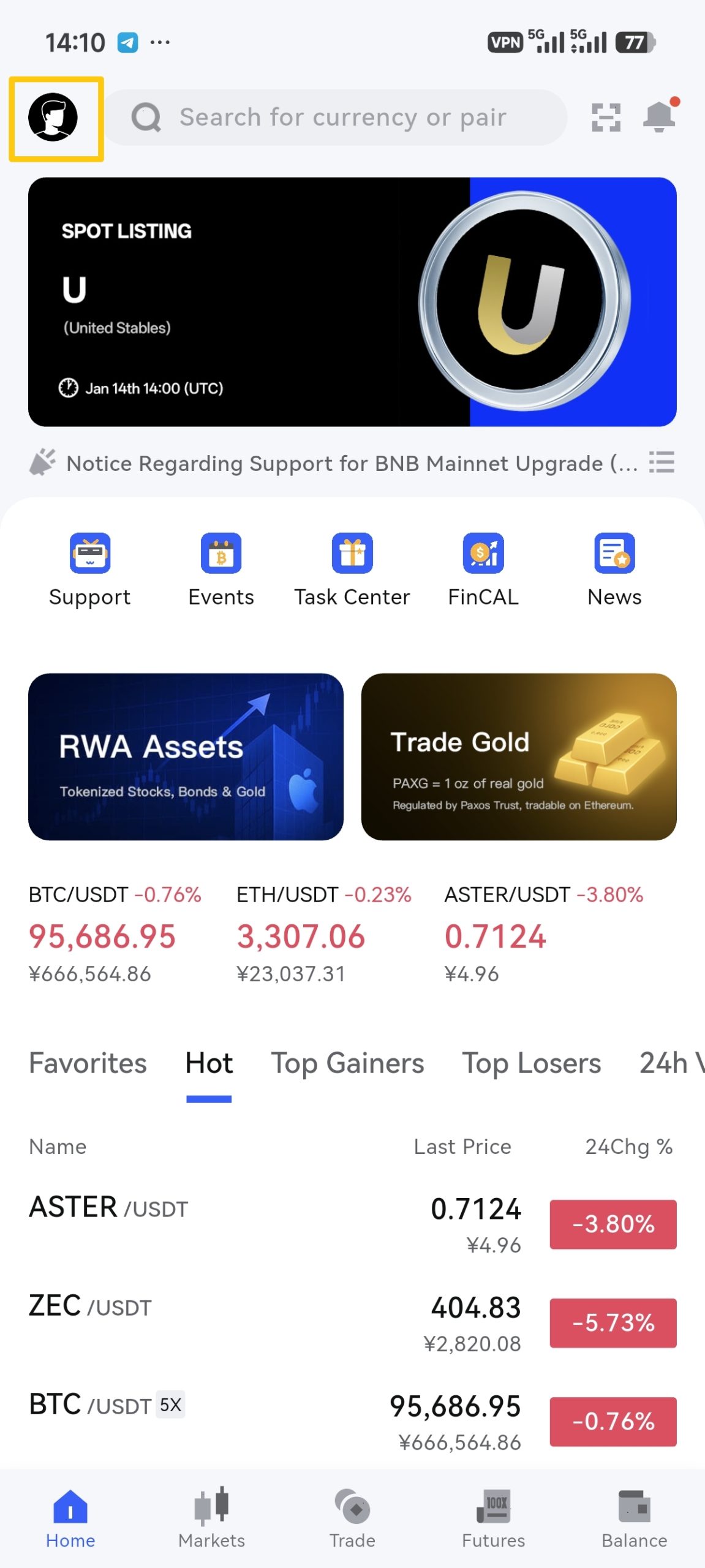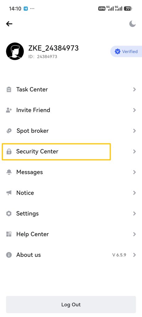 1. Log in to your ZKE account and tap the 【Profile Icon】 in the top-left corner.