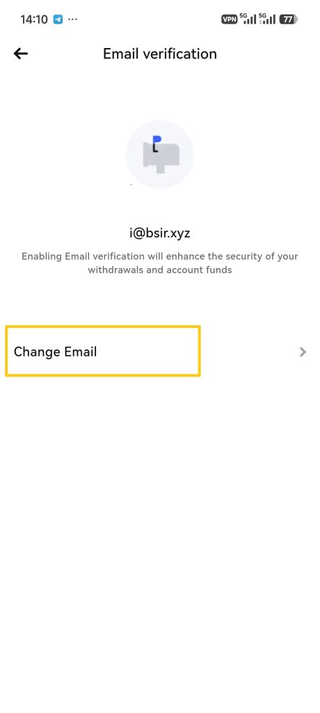 Note: To ensure account security, withdrawals and C2C trading will be disabled for 24 hours after changing your email.