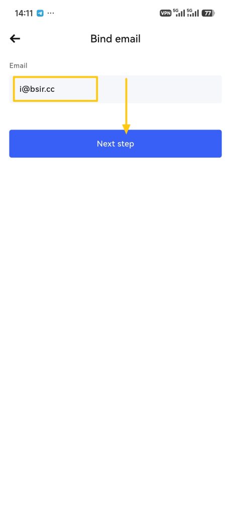 5. Enter your new email address and tap the 【Next step】 button.